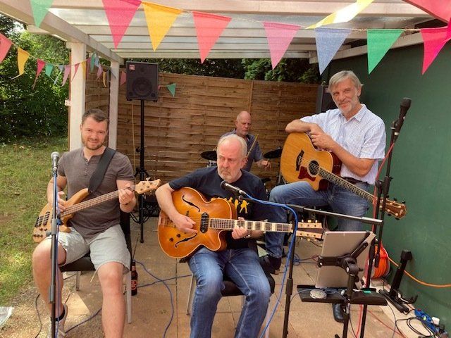 Vorne Links: Uli Böhmer, Gitarre - dahinter: Philip Böhmer, Baß